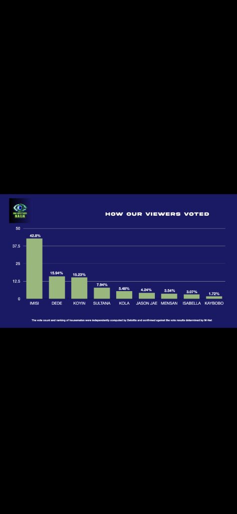 The organisers of Big Brother Naija Season 10, dubbed 10/10, have released the official voting chart, confirming how housemate Imisi emerged as the ultimate winner of the reality TV show.