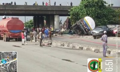 A major tragedy was on Sunday averted in Lagos after a high-speed Lexus SUV collided with a fully loaded petrol tanker around Berger Suya, inward Mile...